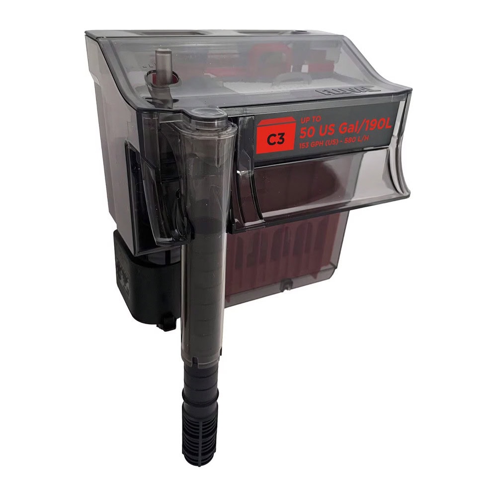 The Fluval C3 Power Filter is available for three tank sizes and with three GPH speeds. It uses five-stage filtration, and this filter has a telescoping intake tube. It also has an adjustable water flow and a water recirculation function that processes water through the filter multiple times for maximum cleaning power. The draw tab and filter media basket make for easy cleaning and maintenance on this filter.