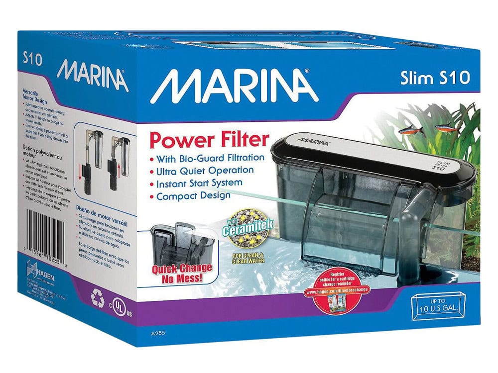 The Marina Aquarium Power Filter is a budget-friendly HOB filter that is available for three tank sizes up to 20 gallons. It’s made to be lower profile than most HOB filters, allowing you to get your tank closer to the wall than most HOB filters allow.