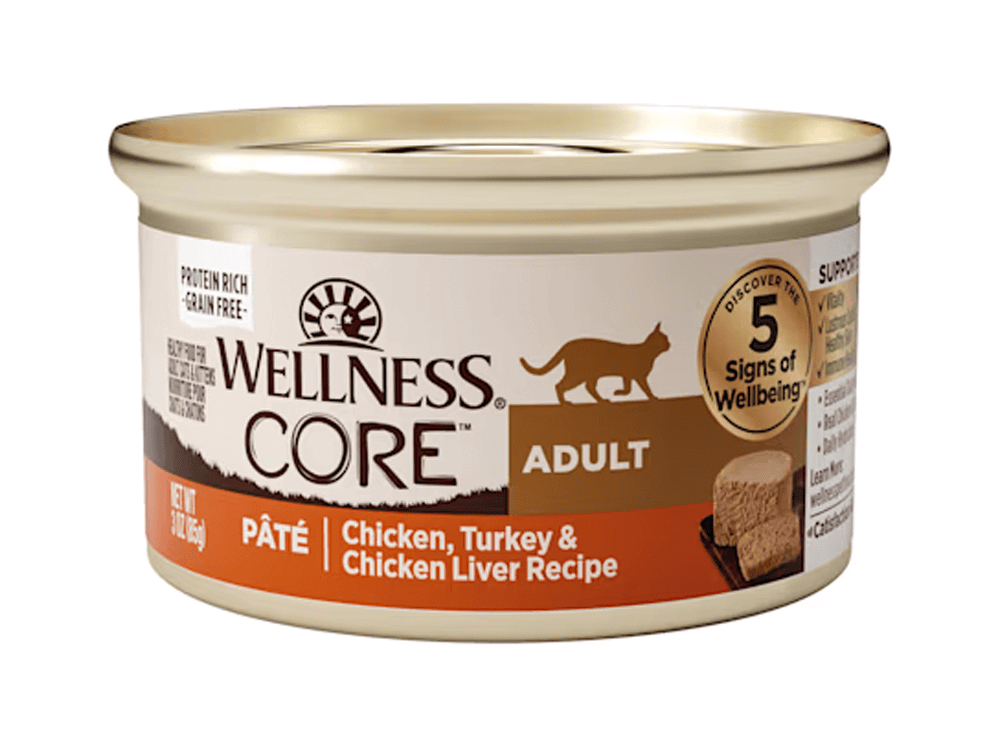 Wellness CORE Natural Grain-Free Chicken Canned Cat Food includes nothing but meat ingredients, including chicken and turkey. Instead of water, chicken broth is utilized to add extra nutrients and protein to the cat food.
