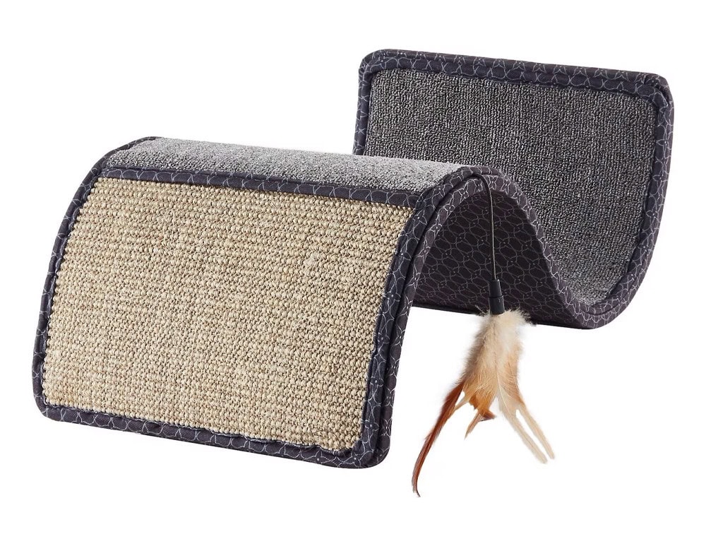 This cat scratching post has an intricate design and sits stably on the floor so your kittens can play underneath or on top of it. Your cat will love the feeling of these textures on its claws. It even has a teaser to promote healthy play.