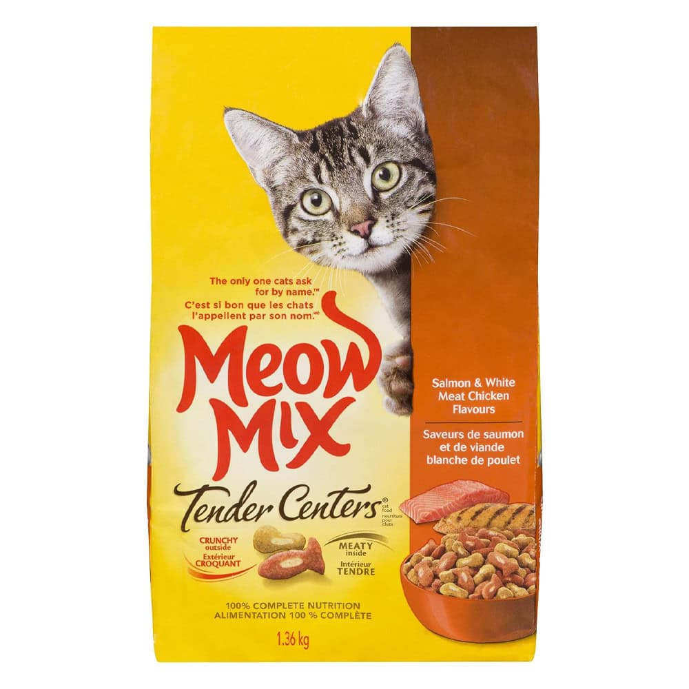 Meow Mix Tender Centres Salmon & Chicken Cat Food is affordable and offers something different from many other foods. Rather than kibble mixed in with treats, every piece in the bag is crunchy on the outside and soft on the inside. It has two different flavours of salmon and chicken and contains essential vitamins and minerals for a balanced diet. It provides extra antioxidants for the immune system and will give your cat healthy skin and coat. However, it contains artificial colours and other questionable ingredients, such as corn syrup.