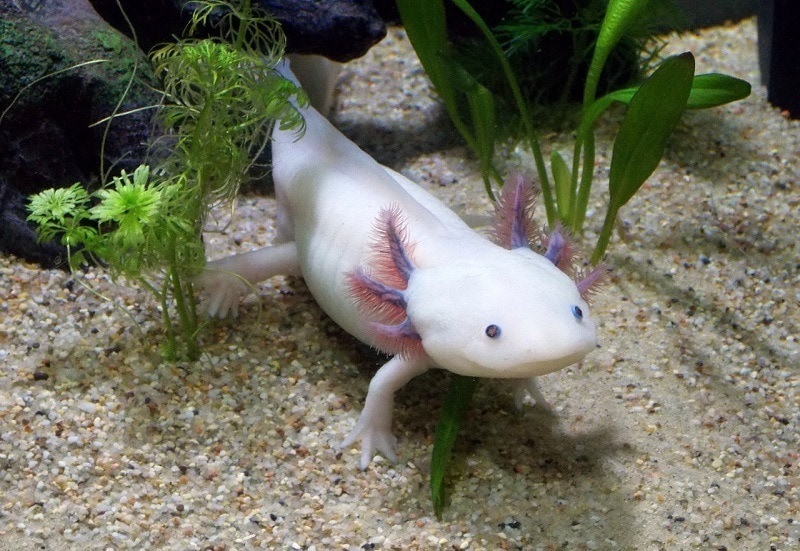 The axolotl, also known as the Mexican walking fish, is one of the coolest aquarium animals to have, like a mix between a fish and a salamander. Seeing as they have legs and lungs alike, you might be tempted to pick them up and let them wander around outside of the tank.