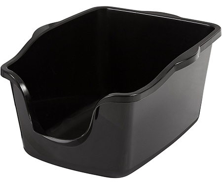 This plastic box is easy to clean because of the smooth surfaces and minimal crevices. Even though the walls won’t let the cats scrape litter out of the box, it is lightweight and they could knock it over if they tried.