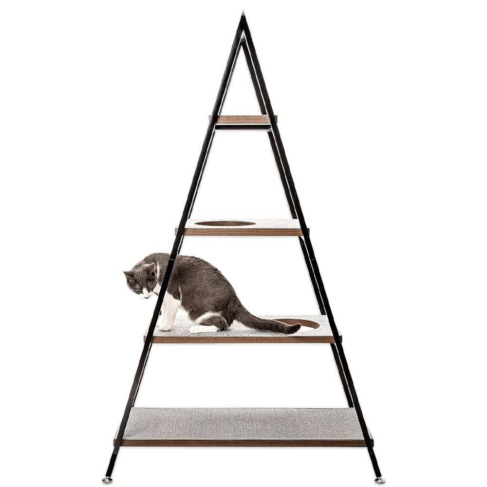 Cat trees don’t get more modern-looking than this Walnut Cat Pyramid from Whisker. This cat tree is a unique, modern take on a cat tree, with a stylish design with two climbing holes, a sisal scratching pad, and ample space to relax.