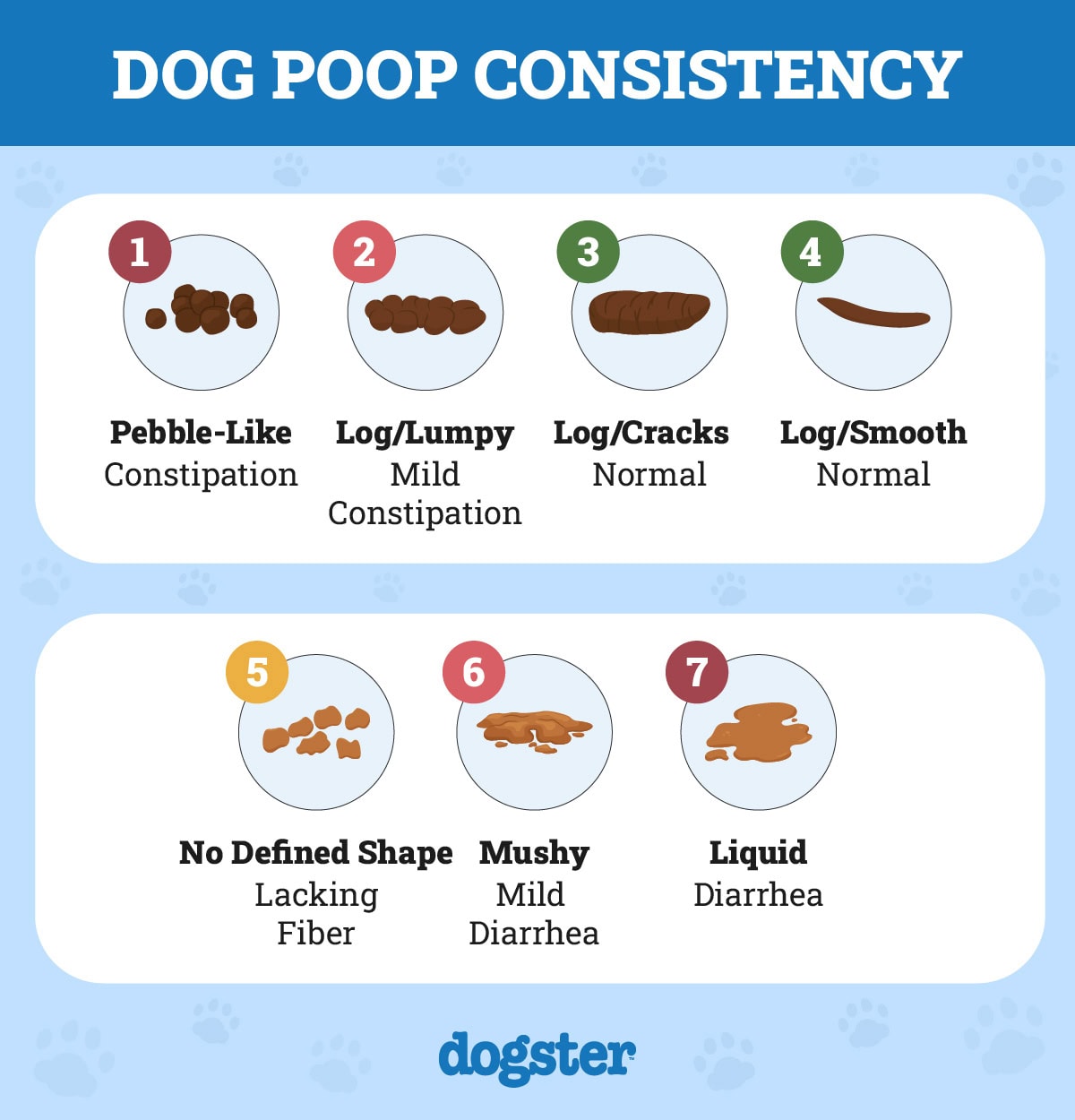 Usually, vets use a numerical system from 1-7 to assign scores to a puppy’s stool. A score of 1 indicates hard pellets, while 7 is a puddle. An ideal puppy stool score is 3—a firm, not too soft or hard, and segmented piece that often appears caterpillar-shaped.