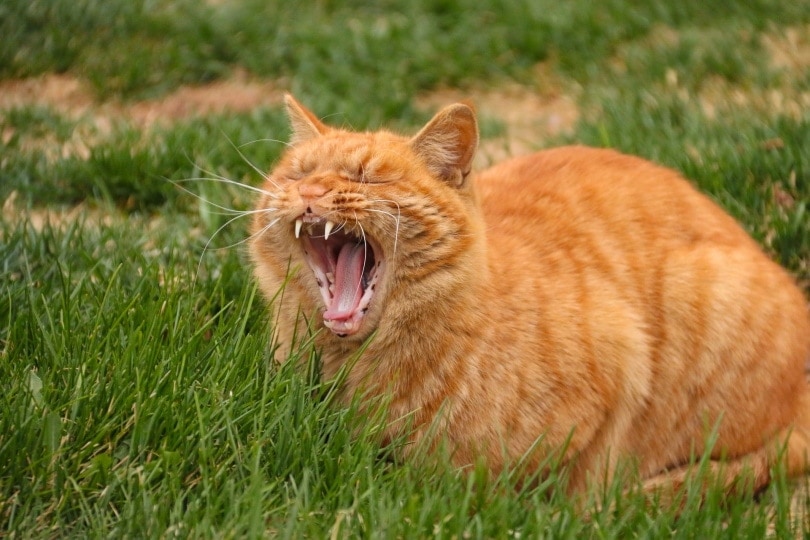Cats that are feeling pain in any of the areas of the oral cavity might increase the yawning behavior in an attempt to deal with the discomfort. Cats suffering from periodontitis or feline stomatitis may exhibit painful yawning behavior or wincing as they yawn. More commonly, pain is associated with eating. Take an opportunity to visually inspect the mouth when it’s wide open during a yawn. If you see any obvious signs such as redness, inflammation, discharge, or bad breath, definitively take your cat to the veterinarian as soon as possible. Other signs commonly associated with a medical issue in the oral cavity are: